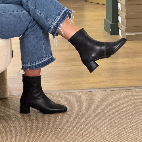 Sobre et raffinée, cette bottine noire en cuir s’adapte à toutes vos occasions. Elle complète parfaitement un pantalon habillé pour le bureau, une robe fluide pour une sortie ou encore un jean pour une allure plus décontractée. Grâce à sa coupe épurée et son noir profond, elle se porte facilement, en journée comme en soirée, en toute saison.