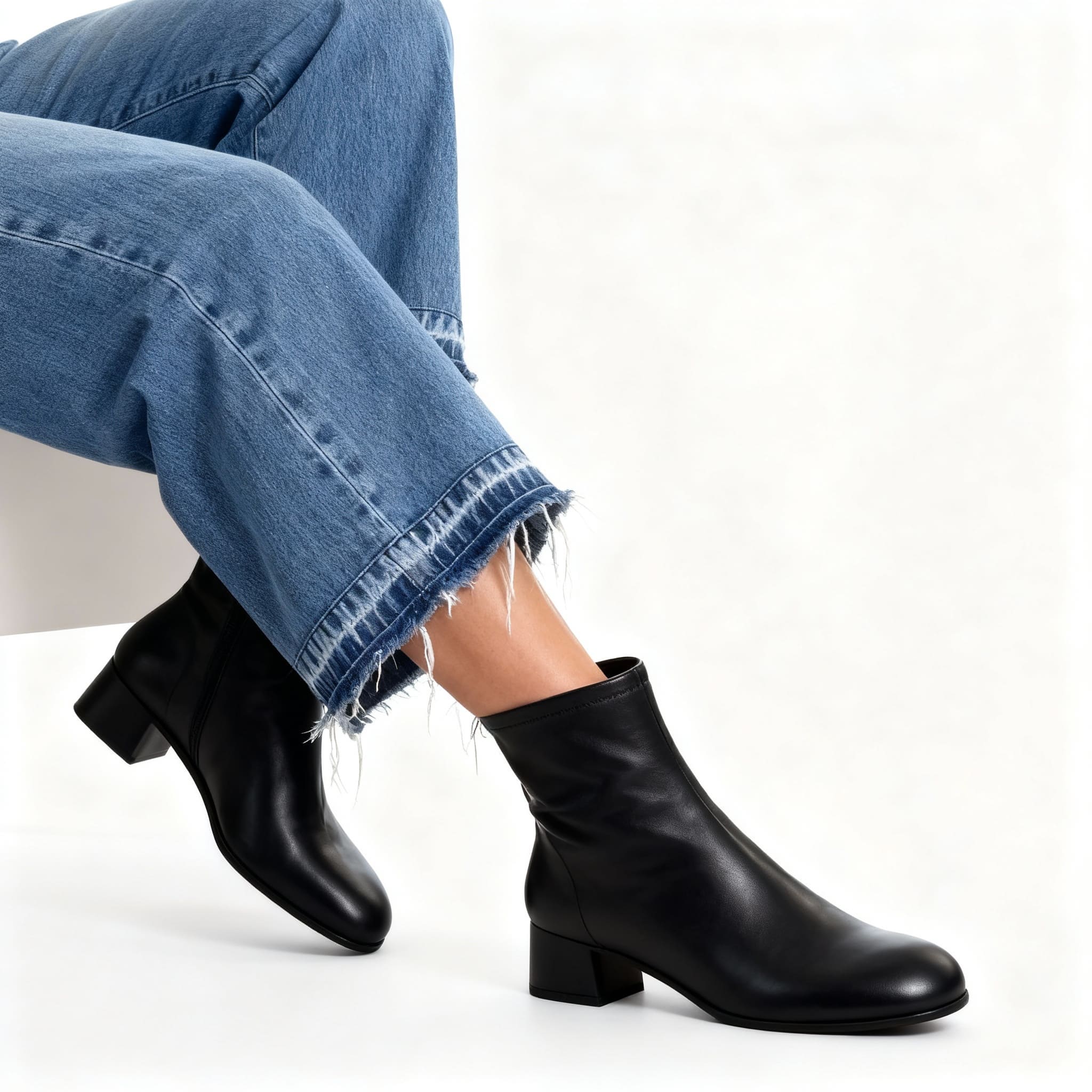 Fabriquée en cuir véritable, cette bottine offre une souplesse et une résistance incomparables. Le cuir épouse la forme du pied et garantit un confort optimal tout en laissant respirer la peau. La semelle intérieure douce et le talon stable permettent de marcher toute la journée sans compromis sur le bien-être.