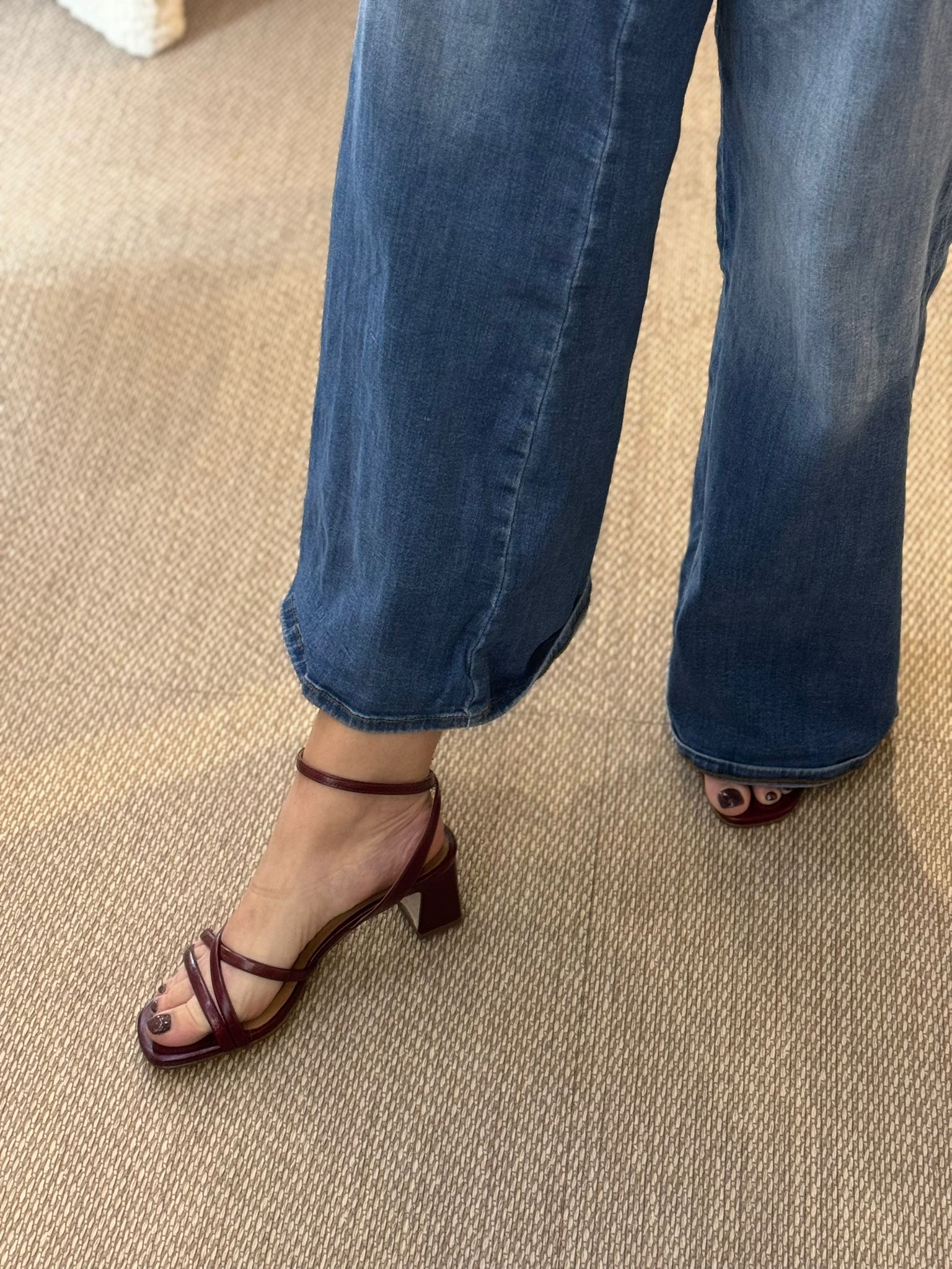 Ces sandales à talons Pedro Miralles bordeaux en cuir souple bordeaux profond arborent des brides fines croisées à l’avant et cheville, avec boucle réglable métallique ton sur ton pour un ajustement parfait. Talon carré confortable d’environ 6-7 cm en cuir gainé, semelle extérieure fine antidérapante et intérieure coussinée pour une marche fluide toute la journée. Bout ouvert aux orteils pour élégance aérienne, finitions cousues main typiques de la marque espagnole.