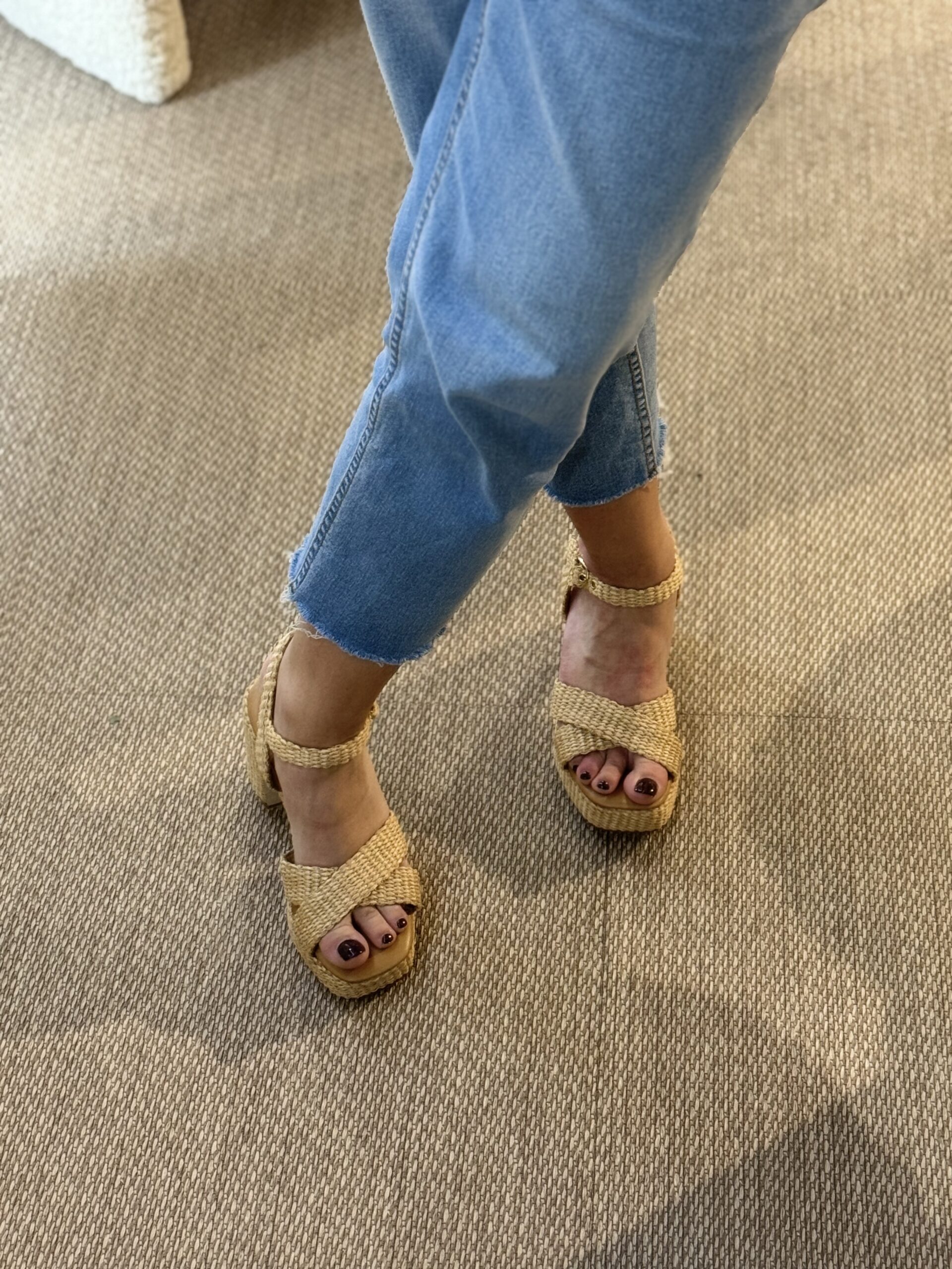 Découvrez les sandales Sandro Rossi beige à plateforme avec semelle mémoire de forme, un sabot ouvert tressé beige naturel pour un confort optimal et style bohème raffiné. Avec bride cheville ajustable, elles séduisent chez Matina.